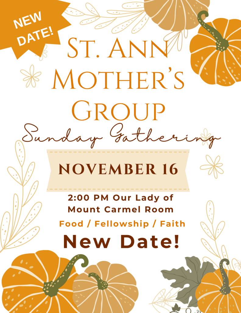 Saint Ann Mothers’ Fellowship is an organization of mothers at Most Precious Blood Catholic Church who have the opportunity to share and participate in social activities and spiritual growth while cultivating a support system within our parish community. St. Ann Mothers’ Fellowship is devoted to bringing the mothers of our parish community together to further nourish the love for our children and families and learn more about ourselves as Christian women.