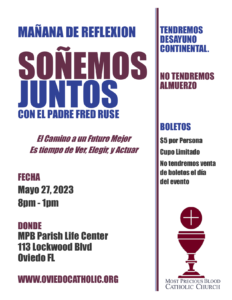 La Iglesia Católica de la Preciosísima Sangre fue fundada en abril de 2005 por el Obispo Thomas Wenski para servir a la creciente comunidad católica de Oviedo y de East Seminole County. El difunto Papa Juan Pablo II designó el 2005 como el “Año de la Eucaristía”,exhortando a todos los católicos a honrar y respetar el regalo de Dios de la Eucaristía, a recibirla con más fe y a reflexionar sobre el significado de la Presencia Real de Cristo en nuestras vidas.